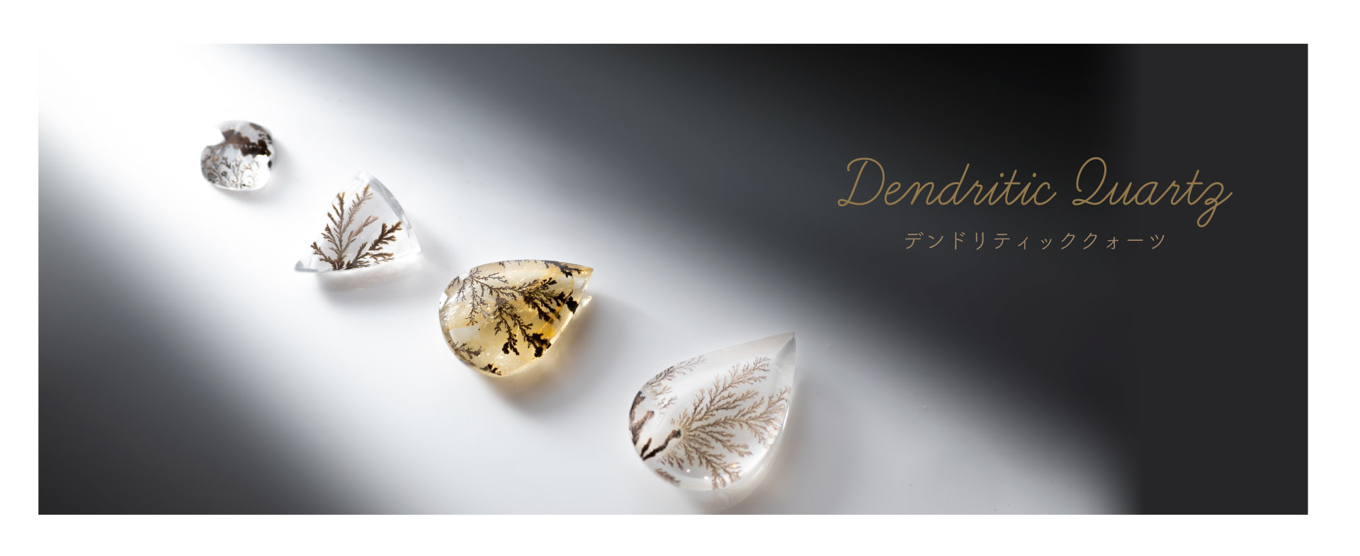 シダ状や樹枝状のインクリージョンを内包していますが、実際に植物を内包しているのではなく、マンガンなどの成分が水晶の割れ目に染みこむことで模様を作りだしています。デンドライトと呼ばれる内包物は二酸化マンガンや酸化鉄が水溶液の状態で結晶内に浸透し微細な粒となって再結晶化されることで独特の模様を描いて結晶しています。