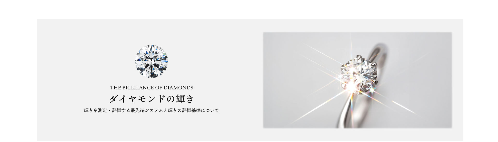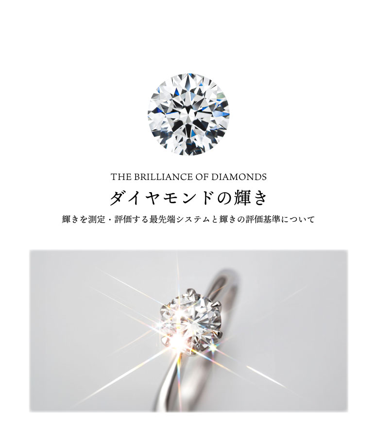 これら4つの要素が、ダイヤモンドの「輝き」を評価する基準となり、それぞれの要素は、ダイヤモンドの輝きに対して異なった役割をもっています。