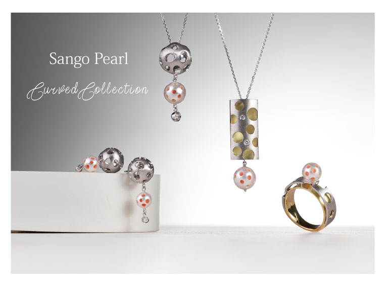 サンゴパール 水玉カービング ピアス